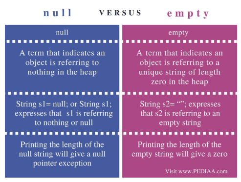 "null is used to refer to nothing while empty is used to refer to a unique string with zero length."